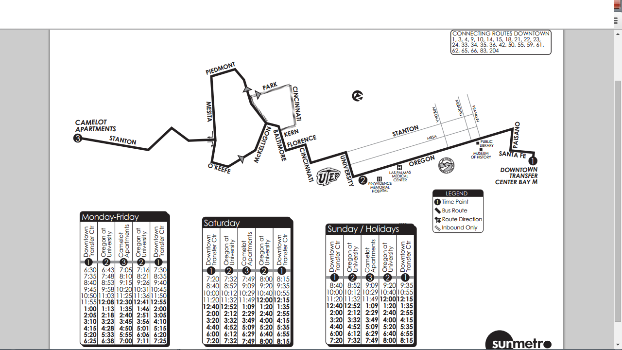 I freely admit that I am not an expert on mass transit systems. That being said, some of the other routes seem wasteful to me. Route 11, “Mesita via Kern Place” is an example. This graphic is from the sunmetro.net web site: