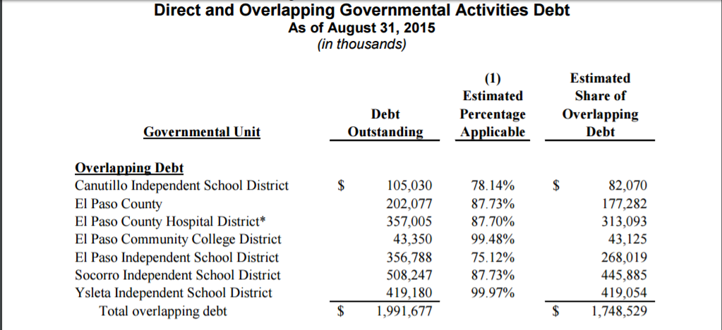 Some of you have asked how much debt we have at the other taxing entities in El Paso.