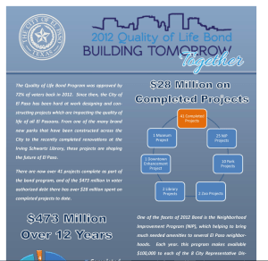 2. As more time passes, inflation lessens the value of that bond money….goods and services cost more. In the end, we El Paso citizens get less from the bond money. Pathetic.
