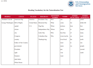 The reading portion of the United States naturalization test requires the applicant to successfully read one of three sentences.
