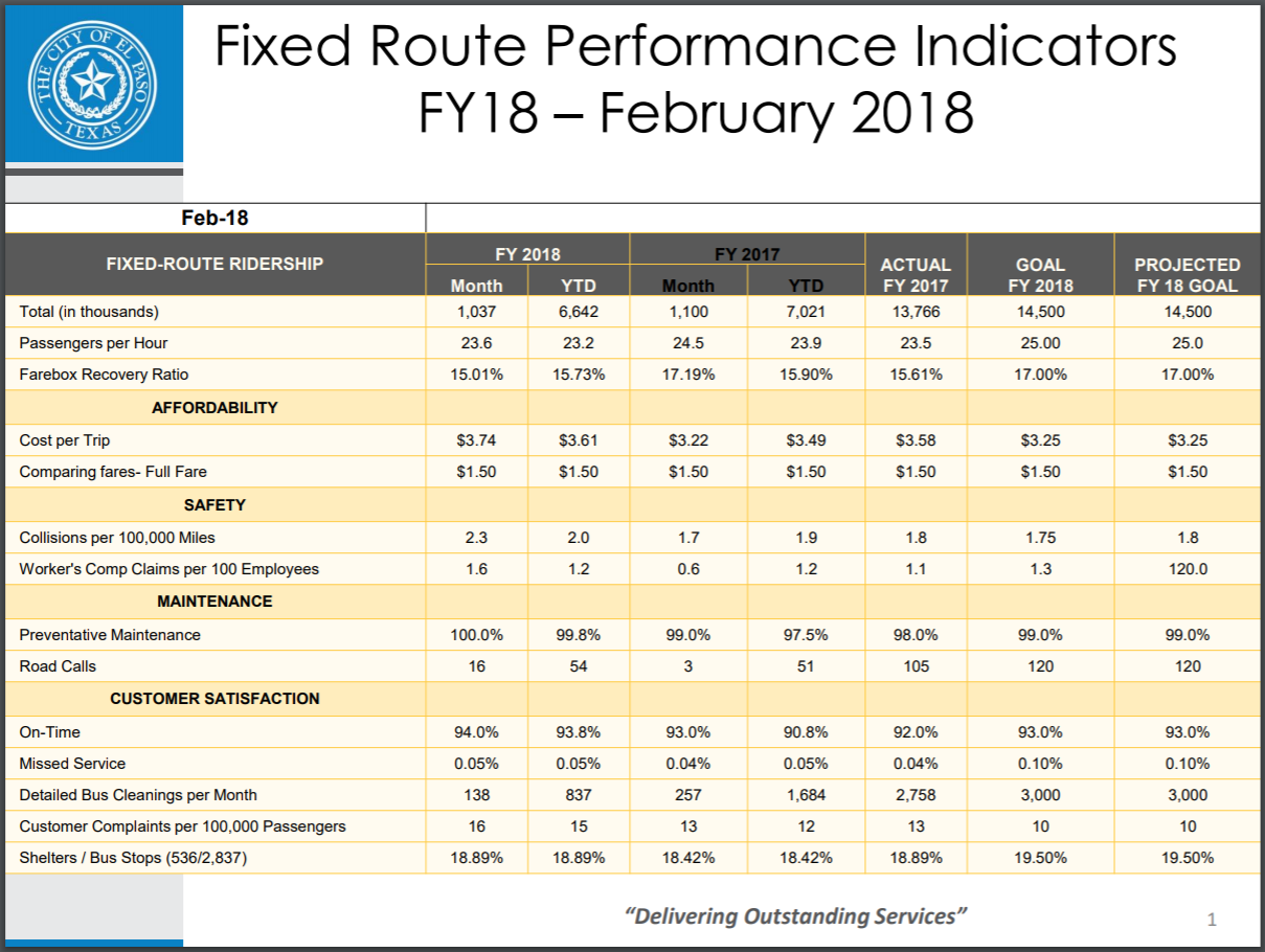 Ridership is down, costs are up, farebox recovery is dropping, collisions are up, worker’s comp claims are up, customer complaints are up.