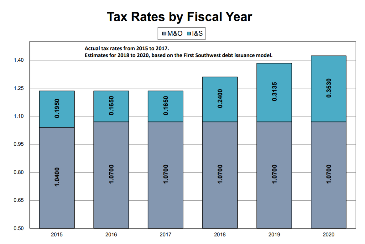In fact this April 2017 presentation to the citizen’s bond advisory committee projects that they will need a tax rate of 31 cents for 2018-2019.