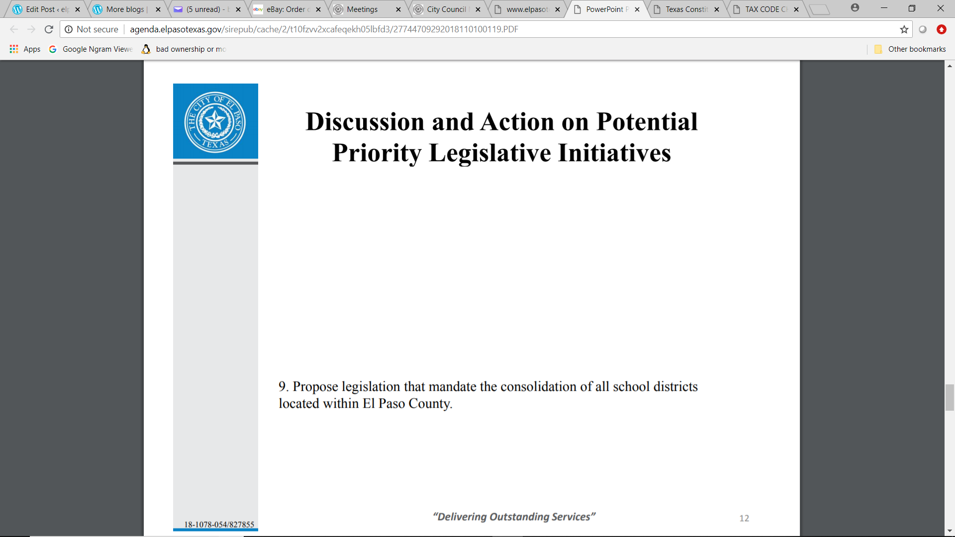 A more reasonable option, might be to push for legislation that penalizes school districts, that force local property taxpayers to subsidize underutilized school campuses. As you likely know, El Paso now has three school districts with documented declining student enrollment.