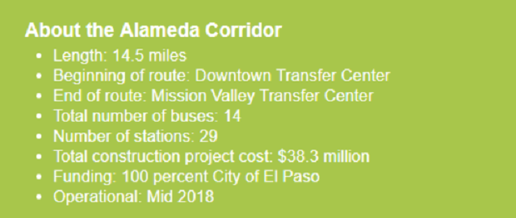 “Sun Metro will soon introduce two new Brio Systems — Alameda and Dyer — to improve the overall public transit system by providing faster and more effective transportation options that span from the Northeast and Mission Valley to downtown… ”